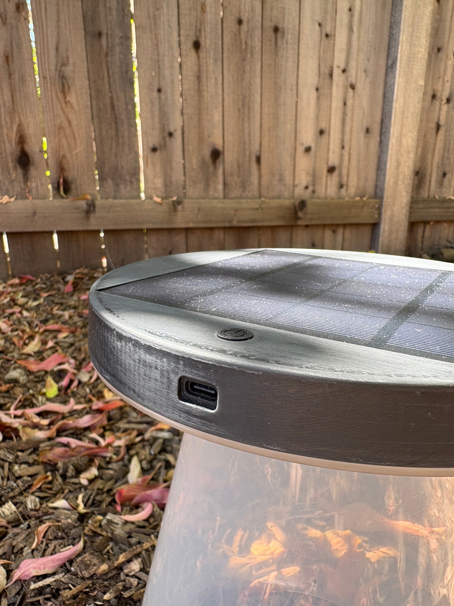 SunBuddi can be charged via USB-C or Solar power and has a battery life of ~8 hours.